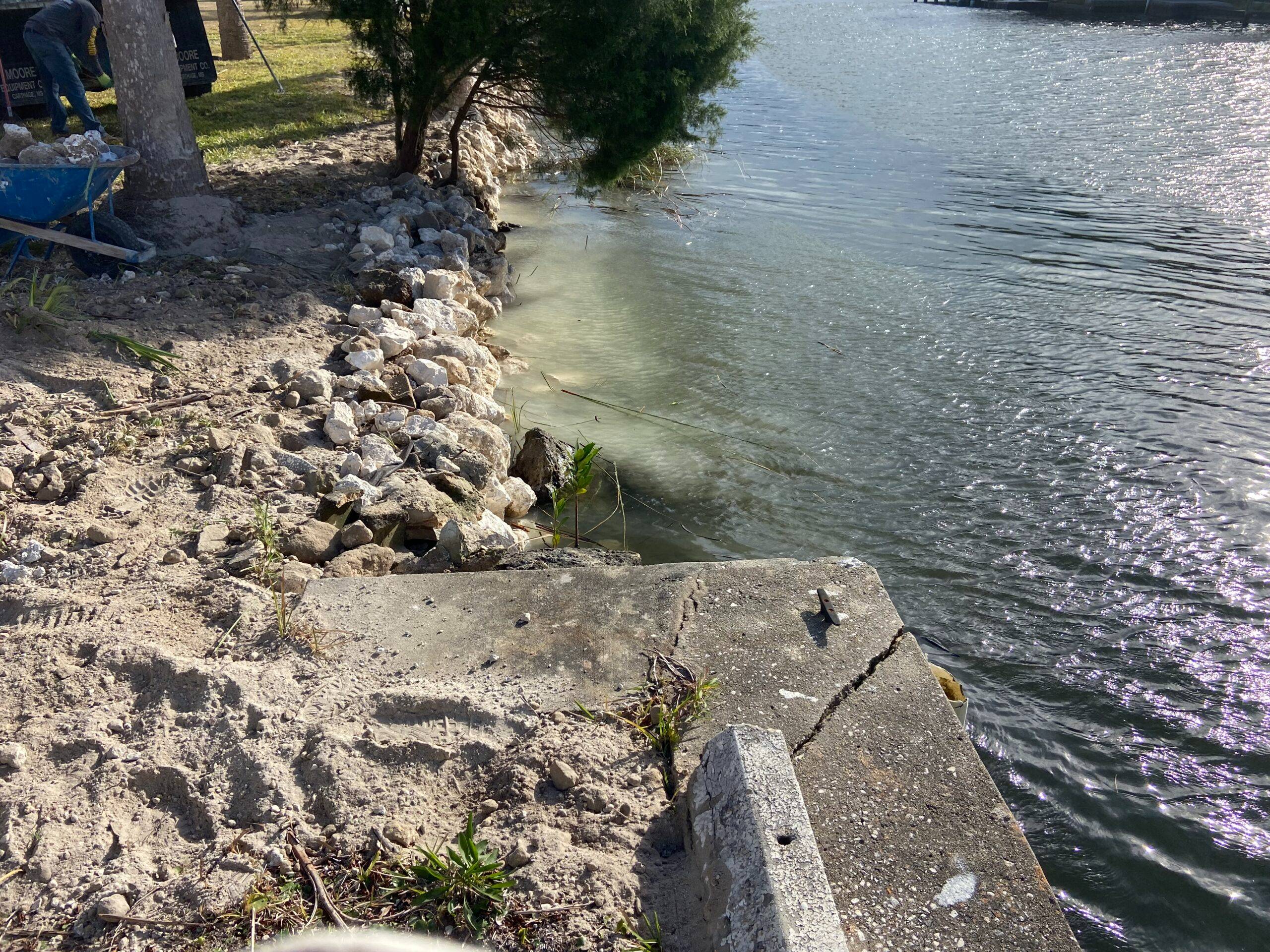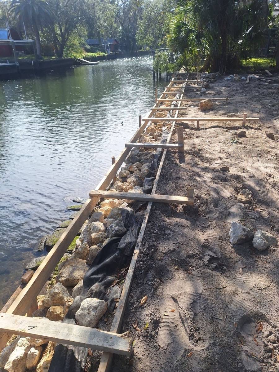 Our work examples includes seawall construction and repair, riprap installation, retaining walls, concrete slabs, driveways, walkways, boat ramps, and erosion control.
